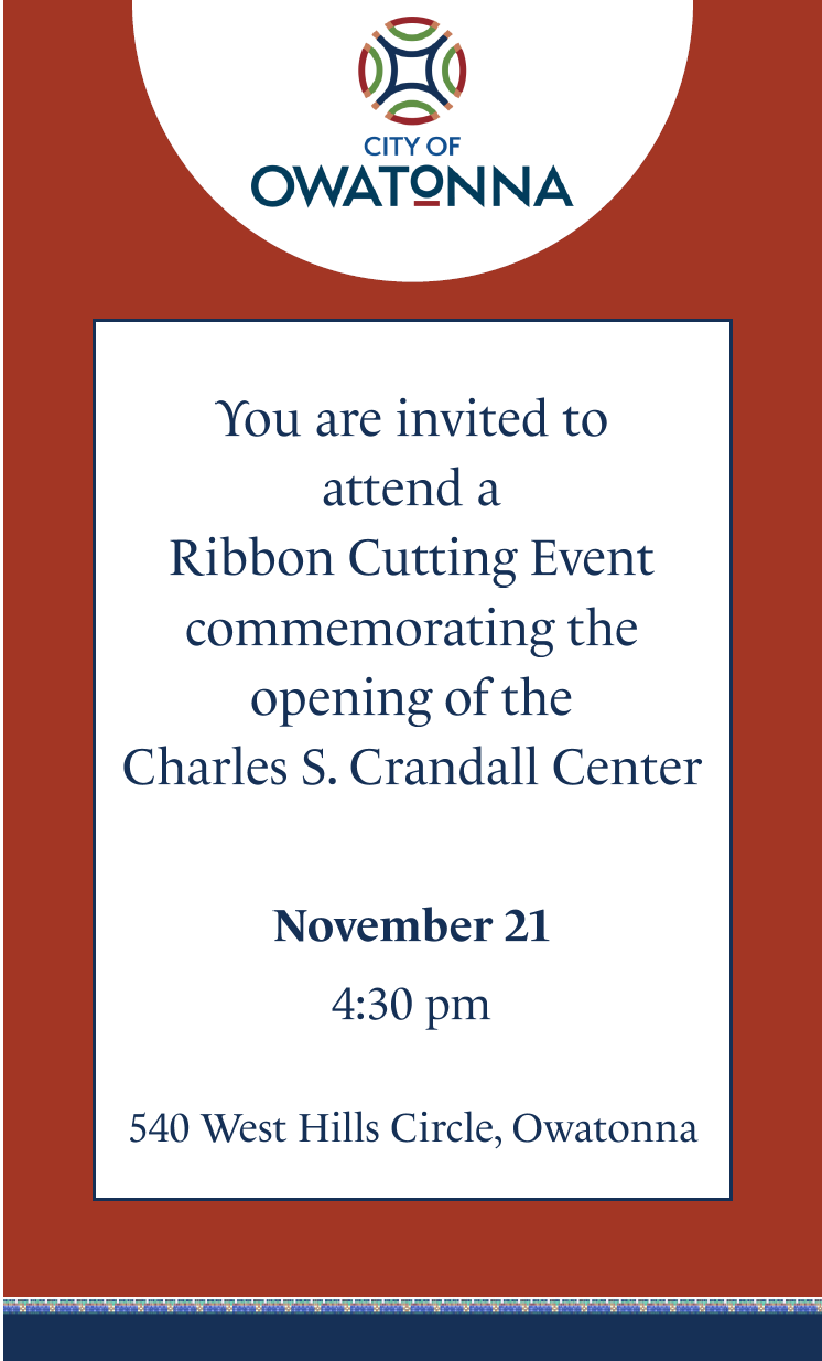 Invitation to attend a Ribbon Cutting Event commemorating the opening of the Charles S. Crandall Center.
