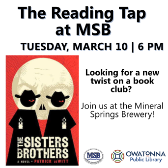 Join us at Mineral Springs Brewery for a discussion of this off-beat Western, The Sisters Brothers, by Patrick deWitt.